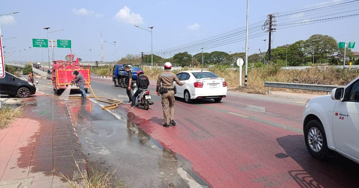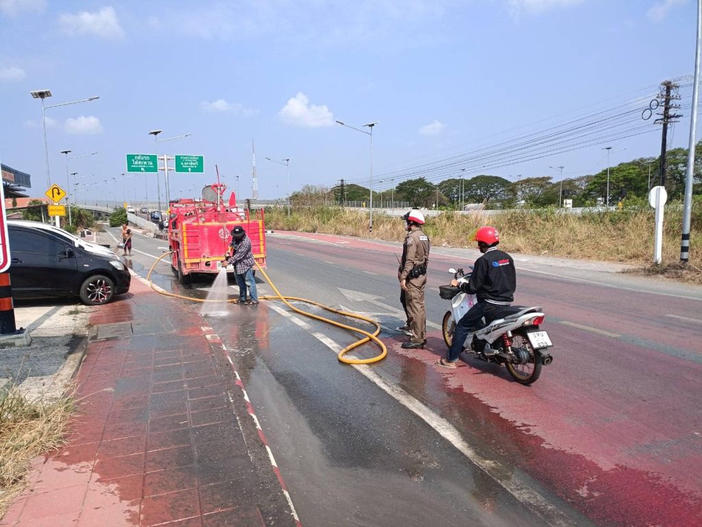 ทำความสะอาดผิวทางจราจร รถน้ำดำเนินการฉีดล้างเศษดิน ต.ธรรมศาลา