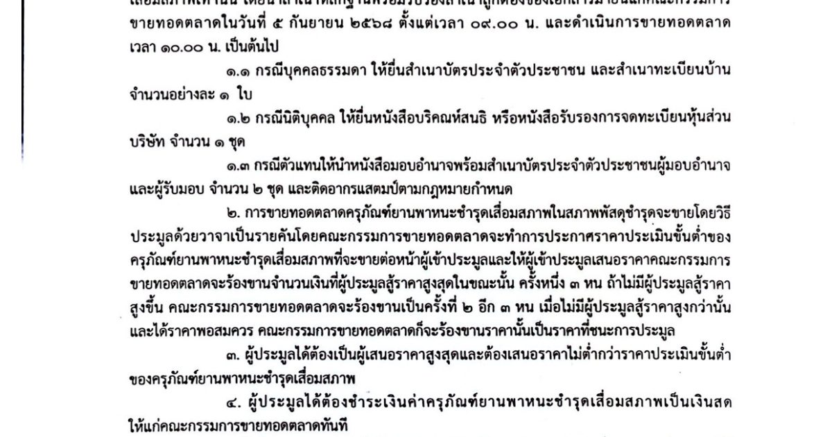 ประกาศขายทอดตลาดครุภัณฑ์ยานพาหนะชำรุดเสื่อมสภาพ
