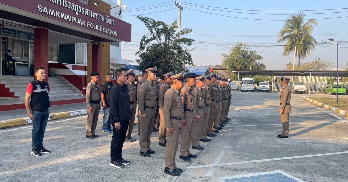 ผกก.สภ.สามควายเผือก อบรมปล่อบแถวข้าราชการตำรวจ สภ.สามควายเผือก ก่อนออกปฏิบัติหน้าที่