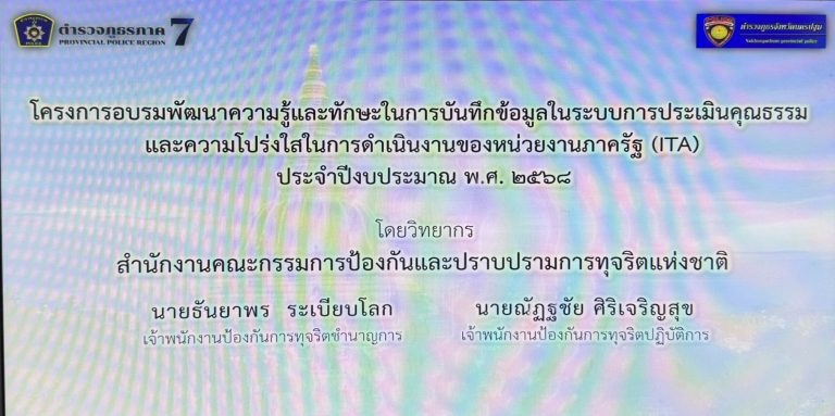 อบรม ITA 6 กุมภาพันธ์ 2568 โดย adm_samkhwaiphueak adm_samkhwaiphueak / ข่าวภารกิจผู้บังคับบัญชา วันนี้ 6 ก.พ.68เวลา 09.00 น.พล.ต.ต.พงศ์พันธ์ วงษ์มณีเทศรรท.ผบก.ภ.จว.นครปฐมมอบหมายให้พ.ต.อ.พงษ์สวัสดิ์ คำปาเชื้อรอง ผบก.ภ.จว.นครปฐมพร้อมด้วย ผกก.ฯ ในสังกัด และข้าราชการตำรวจที่เกี่ยวข้องเข้าร่วมประชุมเข้าร่วมโครงการอบรมพัฒนาความรู้และทักษะในการบันทึกข้อมูลในระบบ การประเมินคุณธรรมและความโปร่งใสในการดำเนินงานของหน่วยงานภาครัฐ (ITA) ประจำปีงบประมาณ พ.ศ.๒๕๖๘โดยมีวิทยากรนายธันยาพร ระเบียบโลกเจ้าพนักงานป้องกันการทุจริตชำนาญการนายณัฏฐชัย ศิริเจริญสุขเจ้าพนักงานป้องกันการทุจริตปฏิบัติการเป็นผู้บรรยายให้ความรู้ ณ ห้องประชุมตำรวจภูธรจังหวัดนครปฐม ต.ถนนขาด อ.เมืองนครปฐม จว.นครปฐม